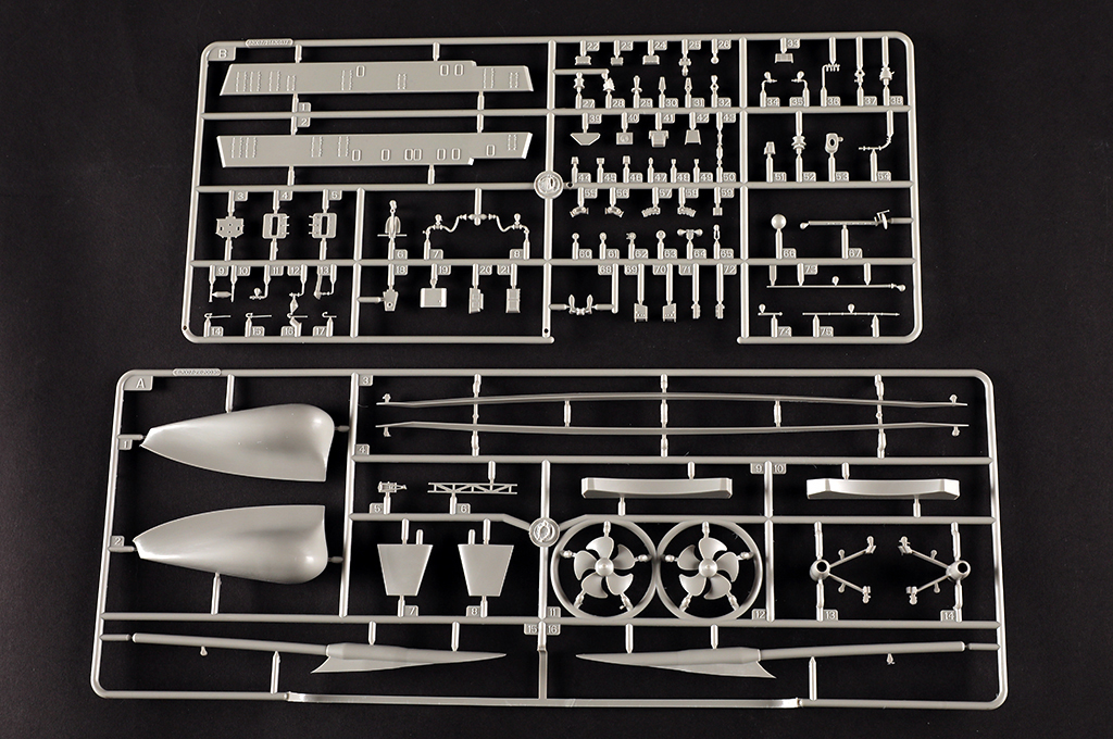 | 胶版总数 | 27 sprues , hull , decks and stand |