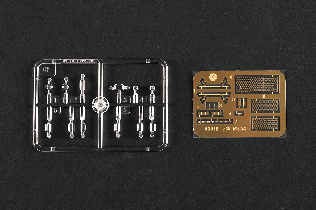 the kit consists of over 640 parts - multi-directional slide moulded hull and turret - 160 individual tracks links - photo-etched parts included |
