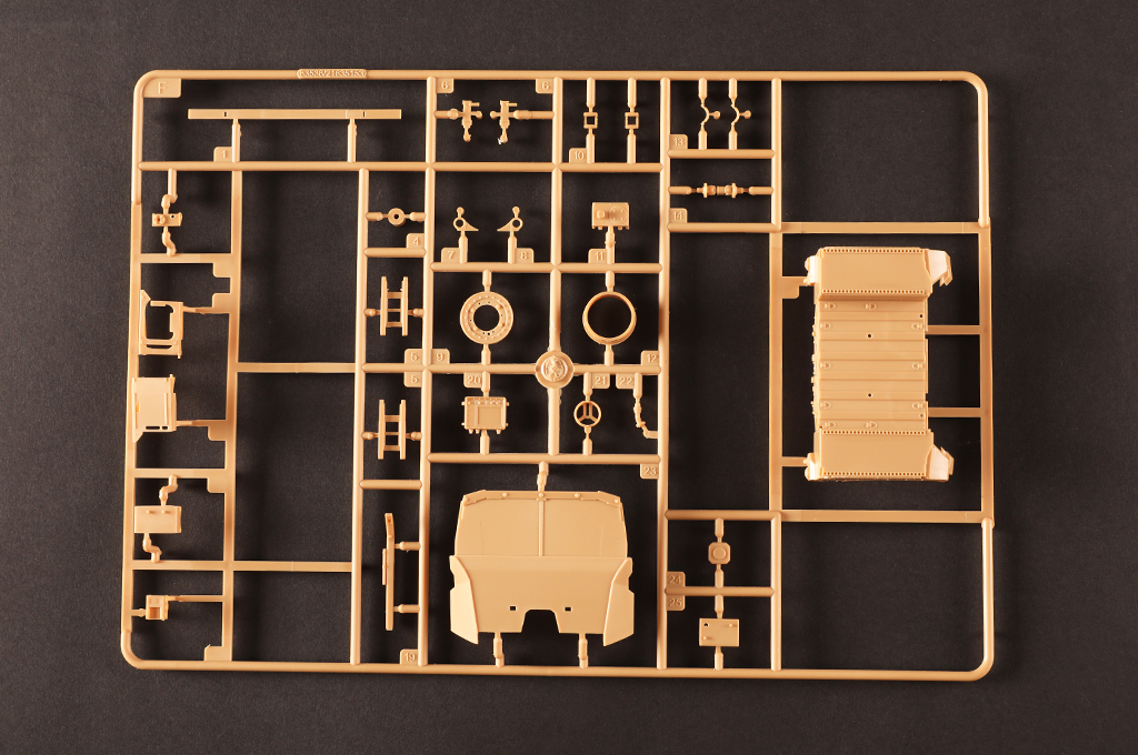 > Detailed multi-directional slide-molded cab. > Full drive train assembly complete with engine transmission, differential housing and suspension units. > The main tires are hollow rubber with very good tread pattern > Wheel hubs are in great det |