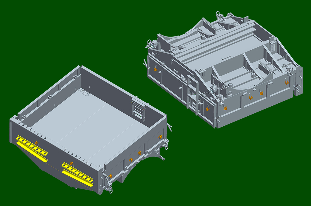 > Detailed multi-directional slide-molded cab. > Full drive train assembly complete with engine transmission, differential housing and suspension units. > The main tires are hollow rubber with very good tread pattern > Wheel hubs are in great det |